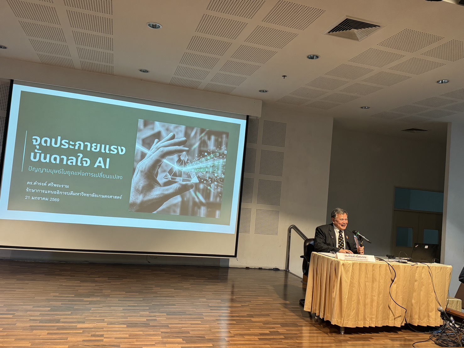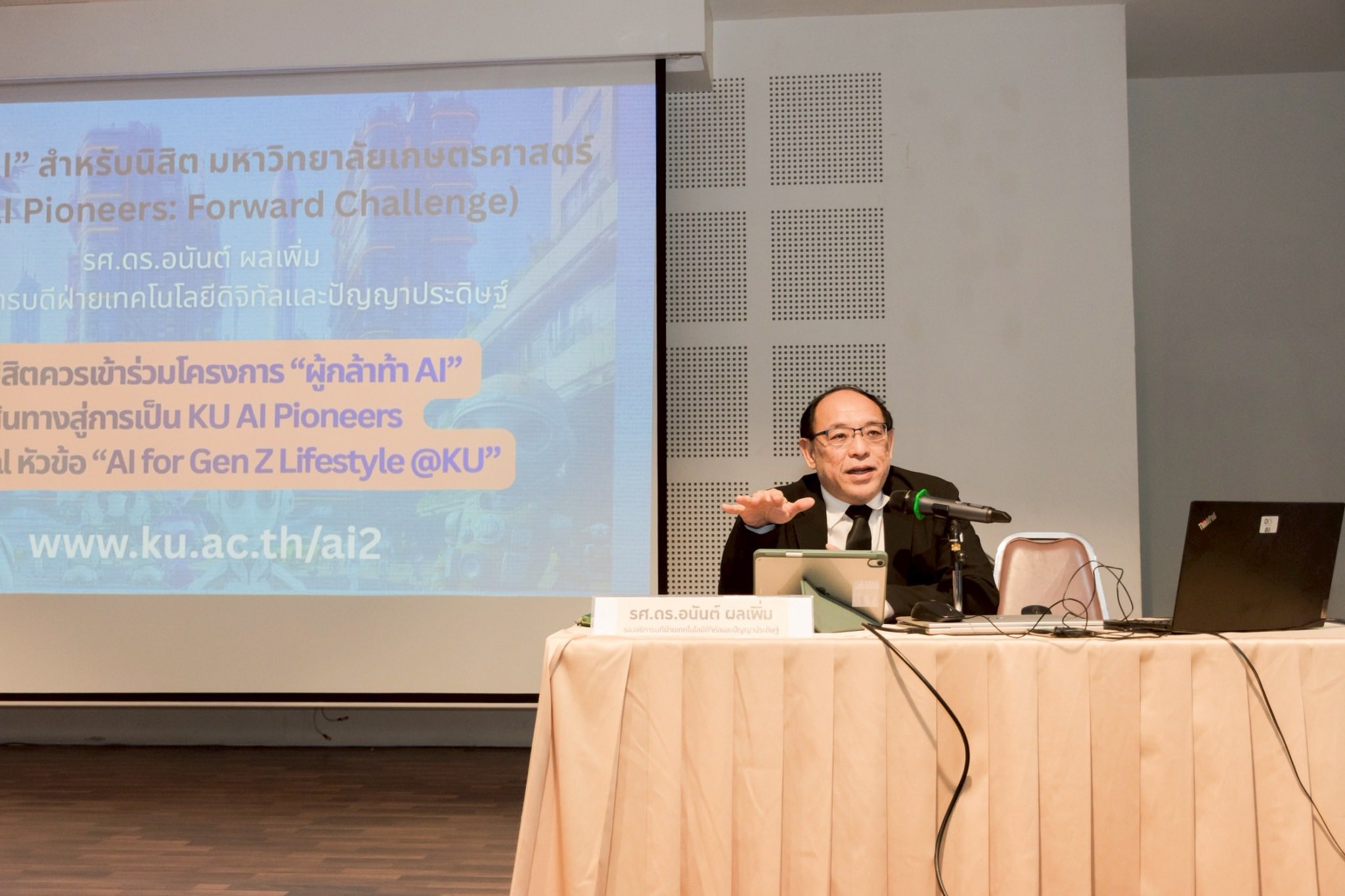 มหาวิทยาลัยเกษตรศาสตร์ จัดงานบรรยายพิเศษ "จุดประกายแรงบันดาลใจ AI" ณ ห้อง 306 สำนักบริการคอมพิวเตอร์ และถ่ายทอดสัญญาณไปยังวิทยาเขตต่างๆ เพื่อเปิดตัวโครงการ "ผู้กล้าท้า AI สำหรับนิสิต" (KU AI Pioneers: Forward Challenge) อย่างเป็นทางการ โดยมีนิสิต คณาจารย์ และบุคลากรเข้าร่วมฟังจำนวนมาก