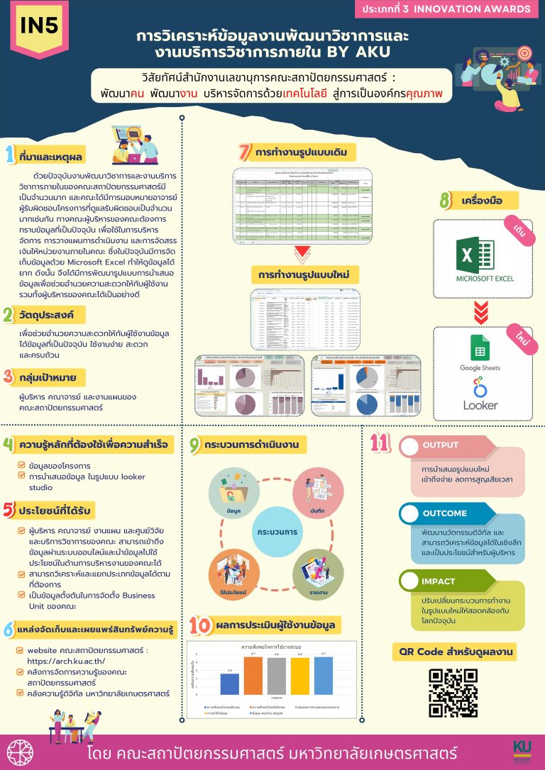 4IN5การวิเคราะห์ข้อมูลงานพัฒนาวิชาการและงานบริการวิชาการภายใน   by AKU315