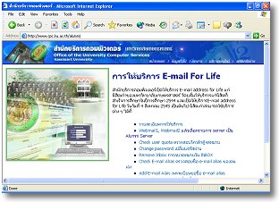 รูปที่ 1 เว็บเพจการให้บริการ E-mail For Life