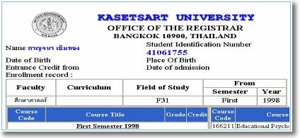 รูปที่ 2 หน้าจอแสดงรายงานผลการเรียน