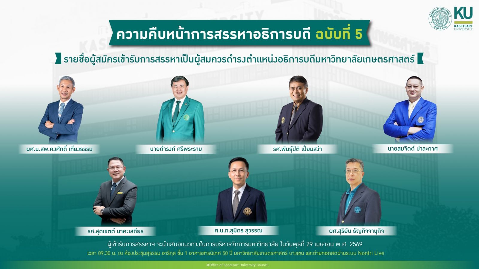 และการปฏิบัติงานของบุคลากร มก. ตามมาตรการลดการใช้พลังงานของหน่วยงานภาครัฐ เพิ่มเติม